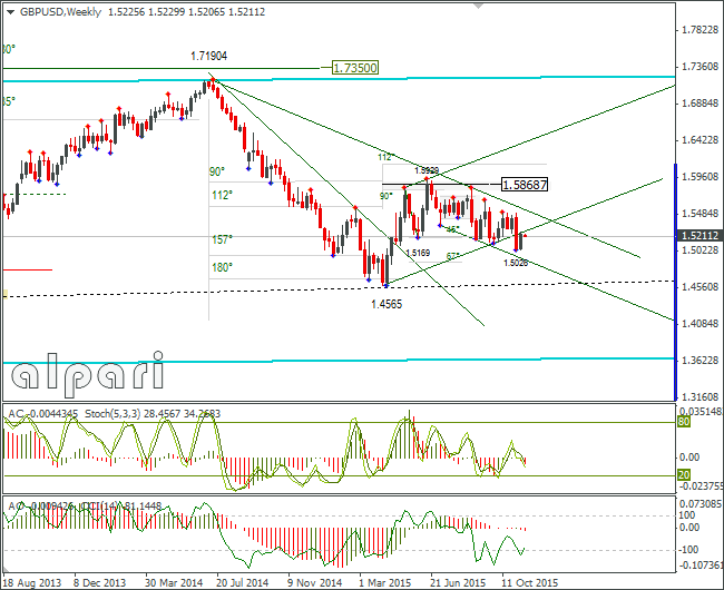 Валютная пара фунт к доллару США отработала цель волны роста и выставила первый импульс на снижение. На сегодня ожидаем пробой минимума этого импульса и продолжение развития тренда на снижение. На сегодня цель - 1.5111. Далее - опять консолидация. Затем - продолжение снижения на отработку уровня 1.5000.