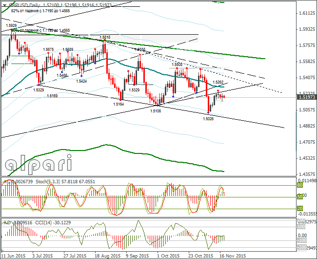 Дневной технический анализ по GBP/USD Сопротивление 3: $1.5358 (минимум 3-4 ноября) Сопротивление 2: $1.5300 (МА(200) для Н4) Сопротивление 1: $1.5263 (максимум 13 ноября) Текущая цена: $1.5221 Поддержка 1: $1.5153 (минимум 17 ноября) Поддержка 2: $1.5091 (минимум 10 ноября) Поддержка 3: $1.5025 (минимум 6 ноября)