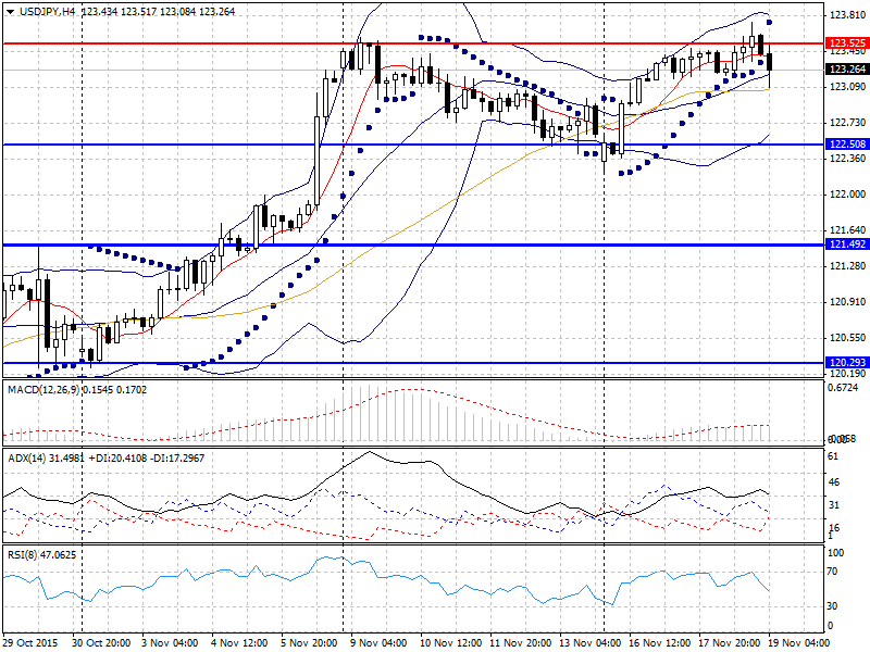 Пара вчера весь день штурмовала 123,50. Некоторое время даже была иллюзия его взятия. Этому оказывали поддержку заявления представителей ФРС по поводу вероятного повышения ставок ФРС в декабре, а также ожидания сегодняшнего заседания Банка Японии и возможного смягчения его монетарной политики.