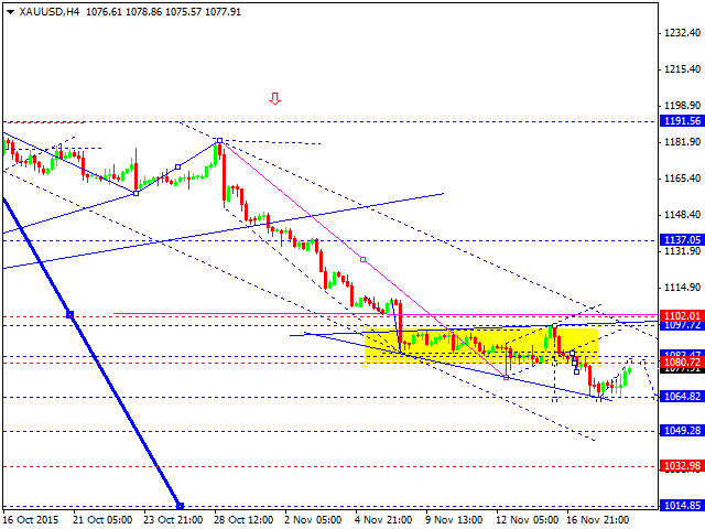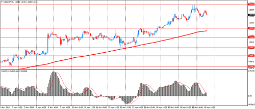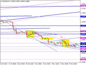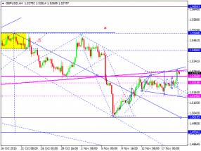Дневной технический анализ по GBP/USD Сопротивление 3: $1.5400 (максимум 5 ноября) Сопротивление 2: $1.5358 (минимум 3-4 ноября) Сопротивление 1: $1.5305 (МА(200) для Н4) Текущая цена: $1.5271 Поддержка 1: $1.5187 (минимум 18 ноября, МА(200) для Н1) Поддержка 2: $1.5153 (минимум 17 ноября) Поддержка 3: $1.5091 (минимум 10 ноября)