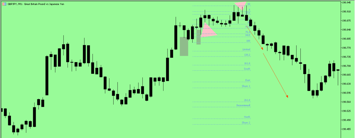 Пара отлично отработала сегодняшний пятиминутный прогноз и даже рвётся ещё ниже на уровень вчерашнего прогноза для Н1. Не буду ей в этом мешать и перенесу тейк-профит на целевой уровень 154,246. Возможно здесь на локальном минимуме будет небольшой откат, но в целом полагаю продолжение южного движения.
