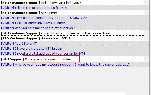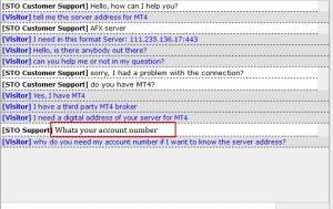 $IMAGE1$ вот примерно что он мне отвечает. Я не могу помочь вам, если Вы не поможете мне Я попросил номер счета Если вы думаете, что IP-адрес открыт для всех, вы ошибаетесь Вы можете повторить номер счёта пожалуйста В любом случае, вы должны скачать наш терминал mt4 и авторизоваться в нашем сервере без каких-либо проблем