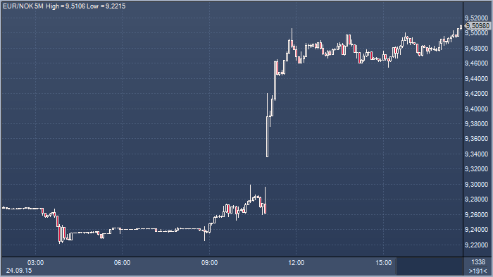 Сюрприз удался, и норвежская крона заметно сдала позиции, ставк лидером по потерям среди мировых валют (-2.8% к евро, -1.98% к доллару), а банки теперь переосмысливают перспективы. Так, в ABN Amro сообщают о повышении прогноза по евро/кроне на конец года с 9.00 до 9.50, тогда как прогноз на конец 2016 был повышен с 8.00 до 8.50 — позиция ЕЦБ и некоторое восстановление цен на нефть будут способствовать снижению пары.