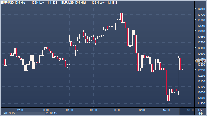 Курс евро снижается во вторник к большинству мировых валют после выхода предварительных данных о динамике потребительских цен в Германии в сентябре. Потребительские цены в Германии, рассчитанные по стандартам Европейского союза, упали в сентябре на 0,2% по сравнению с тем же месяцем 2014 года. Дефляция наблюдается впервые с января 2015 года. Аналитики, опрошенные агентством Bloomberg, не ожидали изменения цен в сентябре. Курс евро к доллару США в настоящее время находится на уровне $1.1235 по сравнению с $1.1244 на закрытие предыдущей сессии. Ранее сегодня после выхода немецких данных курс опускался к уровню $1.1192.