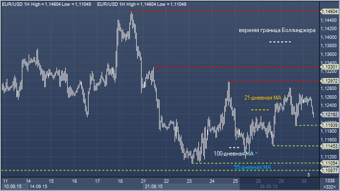 Евро/доллар. Технический взгляд Сопротивление 4: $1.1460 - максимум 18 сентября Сопротивление 3: $1.1389 — верхняя граница Боллинджера Сопротивление 2: $1.1330 - максимум 21 сентября Сопротивление 1: $1.1297 - максимум 24 сентября Текущий курс валютной пары: $1.1219 Сопротивление 1: $1.1194 - минимум 29 сентября Сопротивление 2: $1.1145 - минимум 28 сентября Сопротивление 3: $1.1105 - недельный минимум 23 сентября Сопротивление 4: $1.1087 - минимум 3 сентября