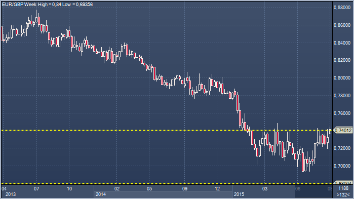 Стратеги Societe Generale предлагают вести торговлю в паре евро/фунт (EUR/GBP) от короткой позиции с учетом той идеи, что "ценовое действие на этой неделе говорит нам о том, что пара EUR/GBP могла бы вернуться в прежний диапазон Gbp0.68-Gbp0.74", в котором она находилась с февраля. Они ведут торговлю посредством опционных контрактов, в связи с чем советуют: "покупайте 2-месячный пут на евро/фунт со спрэдом 1x1.5 и страйками Gbp0.73/0.71". Они говорят: "особенности нашей собственной позиции позволяют в 6,4 раза увеличить прибыль в том случае, если пара EUR/GBP достигнет уровня Gbp0.71 течение 2-х месяцев, при этом чистая окупаемость будет положительной между Gbp0.7260 и Gbp0.6760". Что касается рисков, "продажа путов в более низких страйках позволит в случае успеха увеличить капитал в полтора раза, риски материализуются только ниже Gbp0.68 в нынешних условиях", - говорят они. SocGen отмечает, что"EUR/GBP достигал дна на Gbp0.6936 в июле, и это был единственный случай, когда пара опускалась ниже Gbp0.70 с 2007 года".