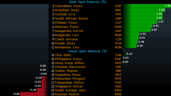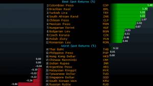 Российский рубль явно оторван от мировой реальности. У него своя история, своя динамика, свои собственные цели и приоритеты. Согласно представленной ниже таблице, все наиболее весомые валюты стран с развивающимися экономиками сегодня подорожали по отношению к доллару после публикации слабого отчета по занятости в США за сентябрь. Однако рубль в немногочисленной группе азиатских валют умудрился сдать позиции в пятницу. При этом в группе аутсайдеров российская валюта является очевидным неоспоримым лидером.