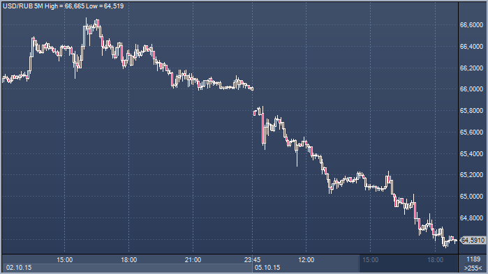 В понедельник, 5 октября, в отсутствие отрицательных новостей о состоянии экономики Китая и сроках повышения ставки ФРС США, а также на фоне нейтральных статданных из США и еврозоны европейские и американские фондовые индексы стремительно растут. В ходе сегодняшних торгов Euro Stoxx 50 прибавил 3,5%, американский Dow Jones уже с открытия торгов поднялся на 1,1%. На российском фондовом рынке также преобладает оптимизм, в результате чего индекс ММВБ вырос на 2,3% и в настоящий момент тестирует уровень сопротивления в 1650 пунктов. Индекс РТС взлетел на 5%, до 800 пунктов. Доллар на Московской бирже под влиянием роста нефти до $49,5 за баррель предпринимает попытку закрепиться ниже отметки 65 руб. Но пока российские фондовые индикаторы и рубль, кажется, находятся на пределе своих возможностей