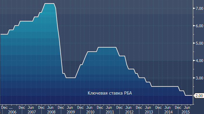 Сегодня в 6:30 МСК Резервный банк Австралии объявит свое решение по ключевой ставке, которая, как ожидается большинством участников рынка, будет сохранена на уровне 2%. Мы также не ожидаем об РБА никаких резких движений и не думаем, что услышим много комментариев относительно текущего состояния экономики страны. Напротив, все внимание, вероятно, сконцентрируется на Китае, которому было посвящено большинство недавних комментариев и публикаций представителей австралийского ЦБ. Что касается самой Австралии, то, до тех пор, пока уровень безработицы является приемлемым, РБА, вероятно, предпочтет занять выжидательную позицию и просто пересидеть период низких цен на сырье, пытаясь оценить их влияние на экономику страны.