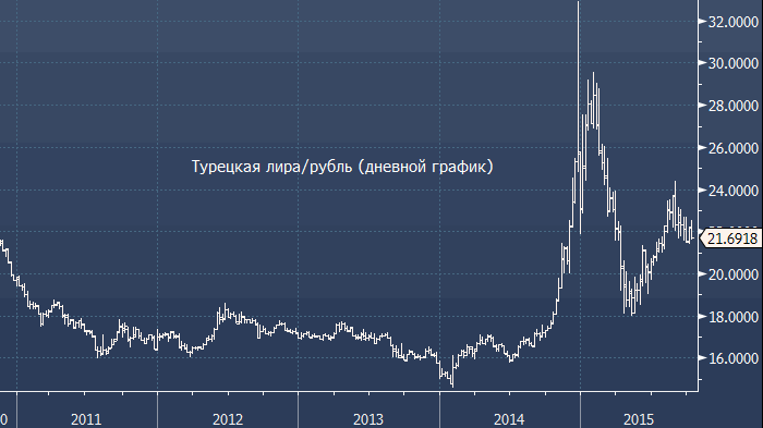 Как следует из опубликованных вчера данных, уровень потребительской инфляция в России в сентябре оказался несколько ниже прогнозов, однако это – не повод для радости. «Похоже, мы видим ранние признаки того, что слабость российской экономики перевешивает слабость рубля и ведет к снижению инфляции», - говорит Уильям Джексон из Capital Economics. – «Слабость местного спроса не позволяет инфляции вырасти». Впрочем, если говорить о рубле, то, по мнению валютных стратегов Citi, он привлекательнее, как минимум, турецкой лиры. «В ноябре в Турции пройдут выборы, и лира пока не выглядит привлекательной, учитывая отсутствие позитивных сдвигов в экономике страны», - пишут эксперты банка. – «Сокращение дефицита торгового баланса Турции вызвано падением объема импорта, нежели ростом объема экспорта. Что касается рубля, то в его текущем курсе уже заложены очень негативные ожидания по ценам на нефть, поэтому главной угрозой российской валюте на ближайшую перспективу станет очень тяжелый для платежного баланса России сезонный период. Мы рекомендуем продавать турецкую валюту против российской с целью 21.00 и стопом выше 22.45»