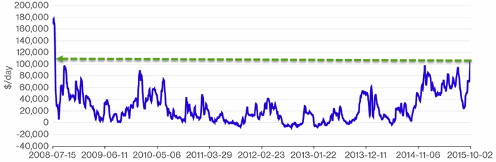 Как следует из данных лондонской The Baltic Exchange, в прошлую пятницу впервые с 2008 года стоимость фрахта нефтяных супертанкеров превысила $100 000 в день. По слухам, главной причиной указанного события послужил резкий рост спроса на них со стороны Поднебесной. «В последние дни резко выросло количество зафрахтованных Китаем судов, которые должны забрать нефть из терминалов Ближнего Востока и Западной Африки», - говорит Джордж Лос, нью-йоркский аналитик судового брокера Charles R. Weber Co. – «По данным таможни, в августе Китай импортировал 26.6 миллионов метрических тон нефти, что на 5.6% больше, чем год назад». Отметим, что, вероятно, власти Поднебесной спешат воспользоваться щедрым подарком Саудовской Аравии, снизившей отпускные цены для Азии и некоторых других регионов, и пополнить свои стратегические резервы черного золота, пока оно дешево.