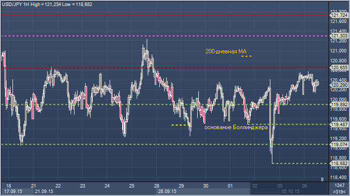 Комментарий::падение на Y118.72 в прошлую пятницу и последующее восстановление лишь способствовало установлению несколько большего диапазона, поэтому мы продолжаем выжидать время в ожидании реально показывающего направленное движение прорыва. Пока сопротивление Y120.65 уже ограничило дальнейший рост к верхней части диапазона на Y121.30. Поддержка сместилась до Y119.85-90, и она в настоящее время защищает от нового падения вниз диапазона, а затем к Y119.07, Y118.80, Y118.53