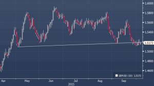 Фунт сегодня продолжили выкупать на спадах к $1.5140, и отсутствие прогресса в развитии нисходящего движения заставило медведей ослабить хватку, в результате чего к настоящему времени пара обосновалась выше $1.5160 и тестирует офера в районе $1.5180. Их поглощение откроет дорогу к $1.5200/10 и сопротивлению к $1.5235/37 (краткосрочная линия сопротивления/23.6% от падения с 18 сентября), но в целом картину сложно назвать позитивной для британской валюты, и даже такое развитие событий не будет предполагать ее улучшения. Дилеры отмечают, что формирование локального основания исключать не стоит, но более вероятным видится продолжение падения в направлении $1.50, особенно пока фунт держится ниже $1.5330 (рядом проходит 200-дненвая sma/минимумы 8 июля, 15 и 16 сентября).