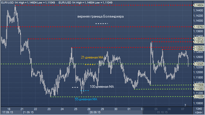 Евро/доллар. Технический взгляд Сопротивление 4: $1.1460 - максимум 18 сентября Сопротивление 3: $1.1380 — верхняя граница Боллинджера Сопротивление 2: $1.1330 - максимум 21 сентября Сопротивление 1: $1.1289 - максимум 5 октября, верхняя граница треугольника Цена: $1.1232 Поддержка 1: $1.1256 - часовая поддержка 6 октября (тестируется) Поддержка 2: $1.1232 - часовое сопротивление 6 октября, теперь поддержка Поддержка 3: $1.1199 - часовая поддержка 6 октября Поддержка 4: $1.1176 — основание треугольника