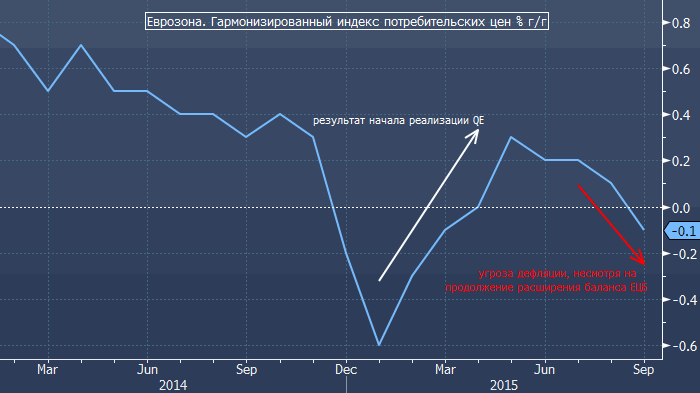 «На примере ситуации с Volkswagen, на фоне активных войн среди автопроизводителей и резкого сокращения инвестиций, гармонизированный индекс потребительских цен в еврозоне вполне еще может упасть на 0.1%. Последняя макроэкономическая статистика является достаточной, чтобы делать такие предположения».