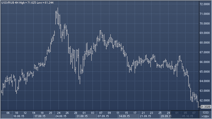 Вчера доллар/рубль опустился до двухмесячного минимума на фоне возобновления роста нефтяных котировок и общего всплеска аппетита к риску, благодаря чему на первый план вышла привлекательность российской валюты в качестве «carry». Инвесторы надеются, что более высокие цены на черное золото помогут российскому правительству залатать дыры в бюджете и вытащить экономику из рецессии. Впрочем, на рынке бытует мнение, что если доллар/рубль упадет ниже 60, Банк России выйдет на рынок для покупки валюты и не позволит рублю сильно подорожать, страхуясь от возможного возобновления падения нефти. «Мы сохраняем среднесрочные медвежьи прогнозы по российской валюте, так как сомневаемся в устойчивости роста котировок черного золота в ближайшие месяцы», - говорит Петр Матыс из Rabobank. – «Перспективы мировой экономики не такие уж радужные, да и Китай, вероятно, скоро вновь «порадует» плохими новостями. ЦБ РФ, вероятно, начнет покупать доллары, если рубль вырастет до 58-60».