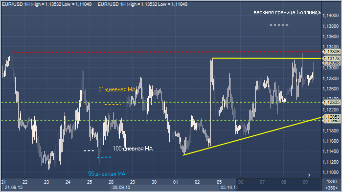 Евро/доллар. Технический взгляд Сопротивление 4: $1.1460 - максимум 18 сентября Сопротивление 3: $1.1434 — верхняя граница недельного Боллинджера Сопротивление 2: $1.1382 - верхняя граница дневного Боллинджера Сопротивление 1: $1.1330 - максимум 21 сентября Цена: $1.1309 Поддержка 1: $1.1233 - часовая поддержка 7 октября Поддержка 2: $1.1199 - часовая поддержка 6 октября Поддержка 3: $1.1191 — основание треугольника Поддержка 4: $1.1180 - 55-дневное скользящее среднее значение