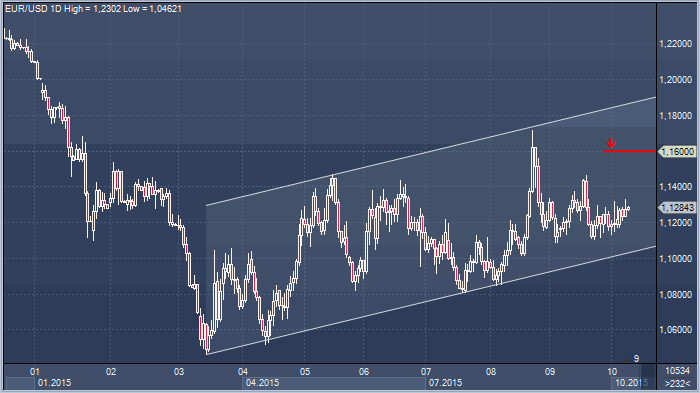 С тех пор, как в марте были протестированы минимумы на 1.0463, курс евро/доллар торгуется в диапазоне. Теперь мы сидим приблизительно в середине установленного канала и ожидаем, что диапазонная торговля сохранится в течение ближайших месяцев. Верхняя граница сейчас обозначена на 1.1974. Нижняя граница приходится на 1.1075. Для нас движение цены выше 1.1600 будет сигналом к открытию коротких позиций