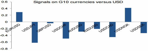 Валютные стратеги Societe Generale обновили еженедельные данные по валютному позиционированию своего фонда FX Quant Fund, управляемого с помощью автоматической торговой системы, базирующейся на основе оценки дифференциала доходности и моментума.