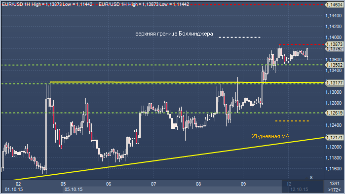 Сопротивление 4: $1.1477 — верхняя граница недельного Боллинджера Сопротивление 3: $1.1460 - максимум 18 сентября Сопротивление 2: $1.1400 — верхняя граница Боллинджера Сопротивление 1: $1.1387 максимум 9 октября Цена: $1.1379 Поддержка 1: $1.1350 — часовая поддержка 12 октября Поддержка 2: $1.1315 - часовая поддержка 9 октября Поддержка 3: $1.1261 - часовая поддержка 8 октября Поддержка 4: $1.1249 - 21-дневное скользящее среднее значение