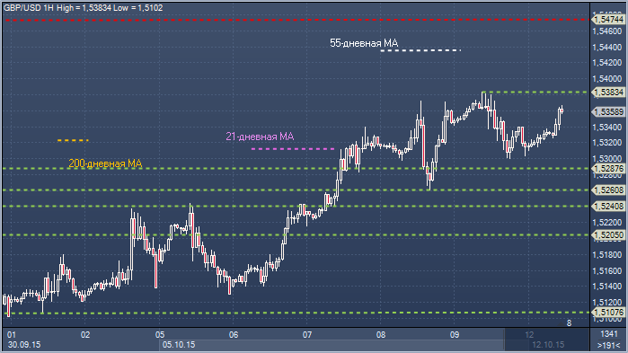Сопротивление 4: $1.5486 - 100-дневное скользящее среднее значение Сопротивление 3: $1.5474 - переменная дневная поддержка / сопротивление Сопротивление 2: $1.5435 - 55-дневное скользящее среднее значение Сопротивление 1: $1.5383 - максимум 9 октября Цена: $1.5331 Поддержка 1: $1.5287 - часовая поддержка 9 октября Поддержка 2: $1.5240 - часовая поддержка 7 октября Поддержка 3: $1.5205 - часовая поддержка 6 октября Поддержка 4: $1.5135 - минимум 6 октября