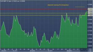 Комментарий:: повторные попытки пройти Gbp0.7326, недельный минимум прошлой недели, вылились в агрессивный рост в пятницу, что положило конец медвежьим надеждам. Быки вновь обрели контроль над рынком, а акценты сместились к слоям сопротивление Gbp0.7430-83, где находятся верхняя граница Боллинджера и максимумы мая. Медведям теперь нужно закрытие ниже Gbp0.7383, чтобы вернуть давление на ключевую поддержку Gbp0.7326.