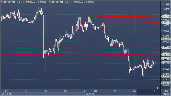 Евро/доллар. Технический взгляд Сопротивление 4: $1.0970 - часовое сопротивление 3 и 4 ноября Сопротивление 3: $1.0939 - часовое сопротивление 4 ноября Сопротивление 2: $1.0912 - часовое сопротивление 4 ноября Сопротивление 1: $1.0897 - максимум 5 ноября Цена: $1.0882 Поддержка 1: $1.0833 - минимум 5 ноября Поддержка 2: $1.0807 - месячный минимум 20 июля Поддержка 3: $1.0788 — основание недельного Боллинджера Поддержка 4: $1.0709 — нижняя граница дневного нисходящего канала