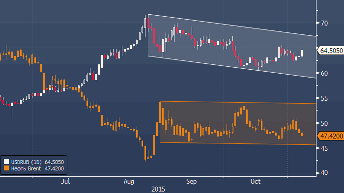 В пятницу ослабление курса рубля стерло все достигнутые до этого в течение недели достижения. Отчет по рынку труда в США за октябрь оказался на удивление крайне сильным, что существенно увеличило вероятность повышения ставок ФРС в декабре. Это охладило аппетит инвесторов в отношении рисковых активов и оказало негативное влияние на развивающиеся рынки. В этом ключе российская валюта вспомнила, что в среду и в четверг темпы ее снижения была заметно ниже, чем падение нефтяных котировок. Поэтому в пятницу российский рубль приводил в соответствие темпы своего падения с динамикой нефтяных цен.