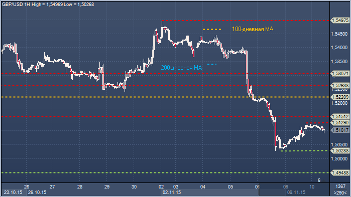 Фунт/доллар. Технический взгляд Сопротивление 4: $1.5263 - часовое сопротивление 5 ноября Сопротивление 3: $1.5220 - часовое сопротивление 6 ноября Сопротивление 2: $1.5151 - часовое сопротивление 6 ноября Сопротивление 1: $1.5128 - максимум 9 ноября Цена: $1.5101 Поддержка 1: $1.5024 - минимум 6 ноября Поддержка 2: $1.4948 — минимум 23 апреля Поддержка 3: $1.4856 - месячный минимум 30 сентября Поддержка 4: $1.4811 - минимум 16 апреля