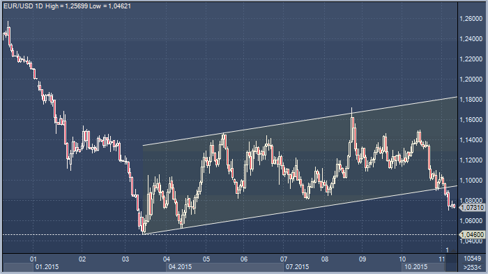 Если взять во внимание статью, опубликованную агентством Reuters в понедельник, реализация стимулирующих мер со стороны ЕЦБ в декабре, действительно, остается очень вероятной, отмечают валютные стратеги BNP Paribas: «С точки зрения валютного рынка снижение ставки по депозитам будет оказывать наиболее негативное влияние на евро. Наши экономисты ожидают ее снижение еще на 10 базисных пунктов. Это в большей степени уже учтено на рынке ставок. Таким образом, несмотря на то, что мы по-прежнему остаемся в лагере медведей по евро, мы скептически относимся к способности курса евро/доллар упасть ниже годового минимума на 1.0460. В частности потому, что если цены будут ниже указанного уровня, то это снижает вероятность того, что меры ЕЦБ будут соответствовать возложенным на них сейчас рыночным ожиданиям».
