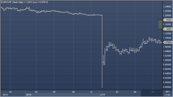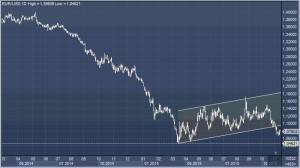 За 10 месяцев евро/доллар передвинулся от 1.40 до 1.05 (с мая 2014 года по март 2015). С тех пор цены консолидируются между 1.05 и 1.15 приблизительно в течение 8 месяцев.