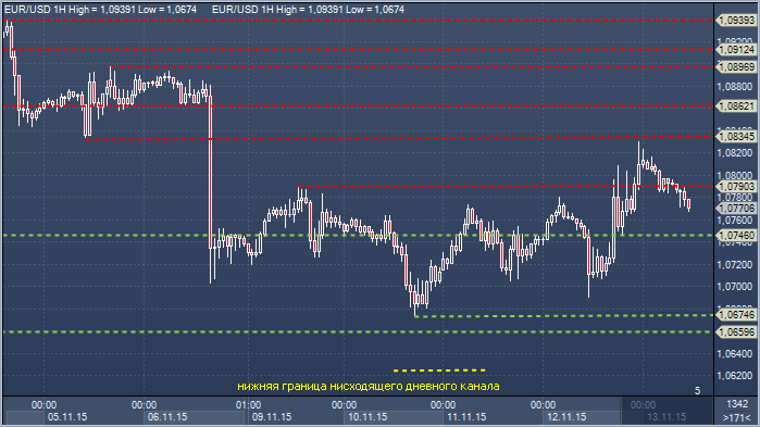 Евро/доллар. Технический взгляд Сопротивление 4: $1.0939 - часовое сопротивление 4 ноября Сопротивление 3: $1.0897 - максимум 5 ноября Сопротивление 2: $1.0862 - часовая поддержка 6 ноября, теперь сопротивление Сопротивление 1: $1.0834 - минимум 5 ноября, в настоящее время - сопротивление Цена: $1.0770 Поддержка 1: $1.0746 - часовая поддержка 12 ноября Поддержка 2: $1.0674 - минимум 10 ноября Поддержка 3: $1.0659 - минимум 21 апреля Поддержка 4: $1.0565 — основание нисходящего канала