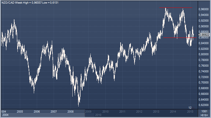 И все же сочетание таких факторов, как расхождение в денежно-кредитных политиках, стабильность в ценах на нефть и относительный запас прочности экономики в виде темпов роста предполагает, что выгодно продать новозеландский доллар против канадской валюты. В среднесрочной перспективе в рамках сырьевых валют из Большой десятки это наилучшее торговое решение.