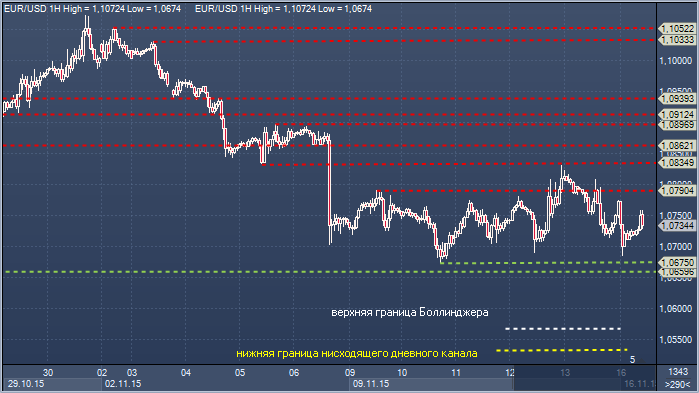 Евро/доллар. Технический взгляд Сопротивление 4: $1.0939 - часовое сопротивление 4 ноября Сопротивление 3: $1.0897 - максимум 5 ноября Сопротивление 2: $1.0862 - часовая поддержка 6 ноября, теперь сопротивление Сопротивление 1: $1.0834 - минимум 5 ноября, в настоящее время - сопротивление Цена: $1.0734 Поддержка 1: $1.0674 - минимум 10 ноября Поддержка 2: $1.0659 - минимум 21 апреля Поддержка 3: $ 1.0563 — основание Боллинджера Поддержка 3: $1.0536 — основание нисходящего канала