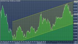 Неудачные попытки вернуться выше stg0.7500, а затем и выше stg0.7200 недвусмысленно говорят в пользу штурма поддержки районе stg0.6936, и евро/фунт продолжает неспешно, но настойчиво двигаться к этой цели. Аналитики Danske Bank, между тем, полагают, что медведи не ограничатся тестированием минимумов этого года, и нисходящая динамика получит развитие. В банке считают, что участники рынка по-прежнему серьезно недооценивают Банк Англии — от него ждут повышения ставок лишь в ноябре следующего года (при этом кривая IOS предполагает вероятность ее снижения на 0.25% в 20% на заседании в сентябре), между тем как британская экономика растет (и как ожидается продолжит расти) темпами выше трендового, а ситуация на рынке труда улучшается, в частности падает уровень безработицы. По мнению Danske Bank, экономическая картина выглядит позитивной для фунта, и рынок не сможет долго игнорировать этот факт. В банке отмечают, что эффект от стимулирующих мер в Еврозоне, фискальная консолидация в Великобритании и политические риски, связанные с референдумом о членстве в ЕС могут оказать поддержку евро/фунту в следующем году, но в ближайшем будущем он останется под давлением.