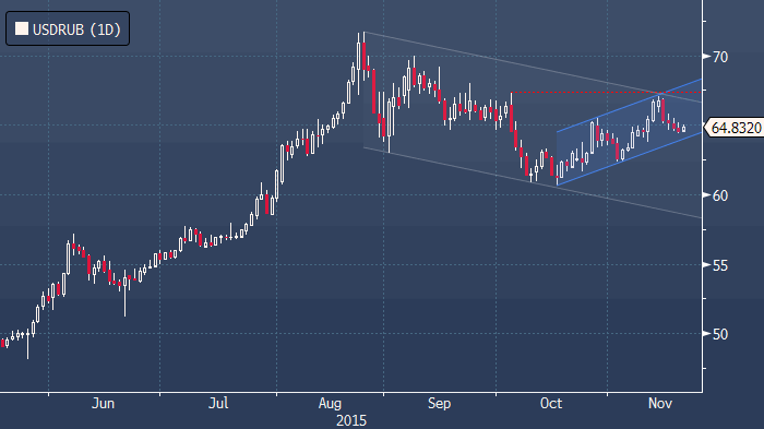 Вчера был спокойный день на валютном рынке. Российская валюта в четверг стабилизировалась на уровнях предыдущего дня, отыгрывая лишь движение основной валютной пары на международных площадках. Нефтяные котировки вчера также не продемонстрировали видимых изменений. Курс бивалютной корзины вчера подрос на 8 коп., до 66,75 руб. Курс доллара составил 64,62 руб. (-13 коп.), курс евро – 69,35 руб. (+34 коп.). На международном валютном рынке евро начал восстанавливать позиции к доллару. Убедившись в неизбежности повышения базовой долларовой ставки в декабре, инвесторы теперь делают акцент на том, что цикл ужесточения денежно-кредитной политики ФРС будет неагрессивным. В результате основная валютная пара поднялась на 80 б.п., до $1,073.