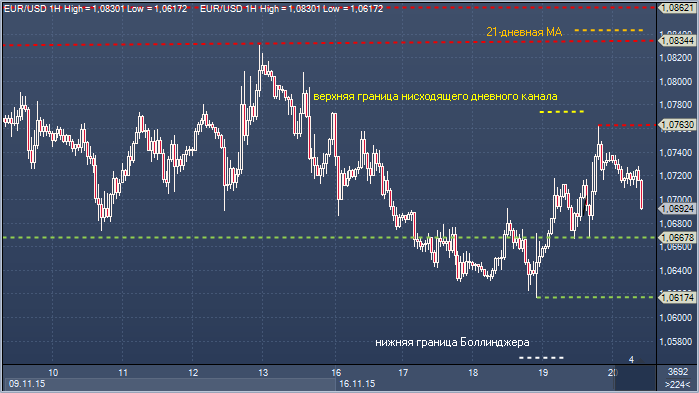 Евро/доллар. Технический взгляд Сопротивление 4: $1.0862 - часовая поддержка 6 ноября, теперь сопротивление Сопротивление 3: $1.0843 - 21-дневное скользящее среднее значение Сопротивление 2: $1.0834 - минимум 5 ноября, в настоящее время - сопротивление Сопротивление 1: $1.0763 - максимум 19 ноября Цена: $1.0692 Поддержка 1: $1.0667 - часовая поддержка 19 ноября Поддержка 2: $1.0616 - минимум 18 ноября Поддержка 3: $1.0567 — нижняя граница Боллинджера Поддержка 4: $1.0520 - месячный минимум 13 апреля