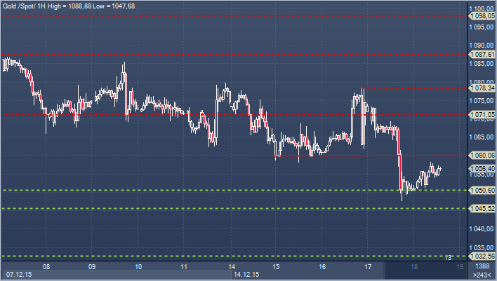 Золото. Технический взгляд Сопротивление 4: $1087.6 — максимум 20 ноября Сопротивление 3: $1078.1 — максимум 16 декабря Сопротивление 2: $1071.0 - область консолидации на часовом графике 17 декабря Сопротивление 1: $1060.1 — минимумы 14 декабря, 15 декабря, теперь сопротивление Цена: $1056.4 Поддержка 1: $1050.6 - часовая поддержка Поддержка 2: $1045.5 — минимум февраля 2010 Поддержка 3: $ 1032.5 — максимум марта 2008, теперь поддержка Поддержка 4: $ 1022.1 — нижняя проектируемая граница двухлетнего нисходящего канала
