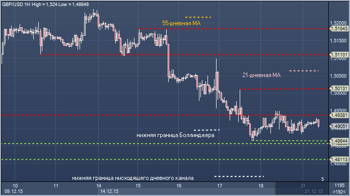 Фунт/доллар. Технический взгляд Сопротивление 4: $1.5107 - минимум 10 декабря, теперь сопротивление Сопротивление 3: $1.5064 - 21-дневное скользящее среднее значение Сопротивление 2: $1.5003 - максимум 17 декабря Сопротивление 1: $1.4938 - часовое сопротивление 17 декабря Цена: $1.4905 Поддержка 1: $1.4864 - минимум 17 декабря Поддержка 2: $1.4856 - минимум 21 апреля Поддержка 3: $1.4811 - минимум 16 апреля Поддержка 4: $1.4752 — нижняя граница нисходящего дневного канала