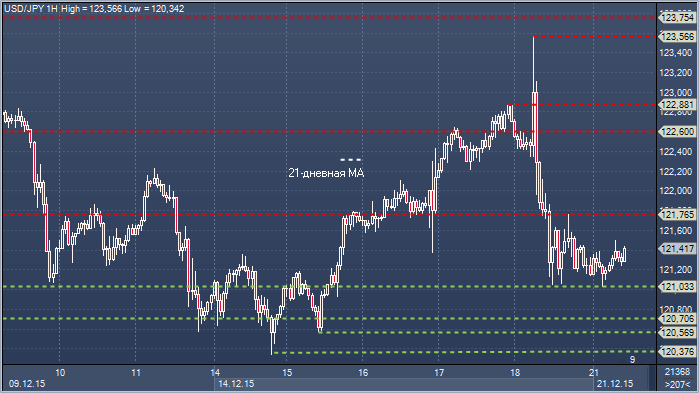 Доллар/иена. Технический взгляд Сопротивление 4: Y123.75 - максимум 18 ноября Сопротивление 3: Y123.55 - часовое сопротивление 18 декабря Сопротивление 2: Y122.60 - переменная часовая поддержка / сопротивление Сопротивление 1: Y121.76 - часовое сопротивление 18 декабря Цена: Y121.41 Поддержка 1: Y121.03 - минимум 18 декабря, часовая поддержка 21 декабря Поддержка 2: Y120.70 — восходящая недельная трендовая линия Поддержка 3: Y120.57 - минимум 15 декабря Поддержка 4: Y120.34 - минимум 14 декабря