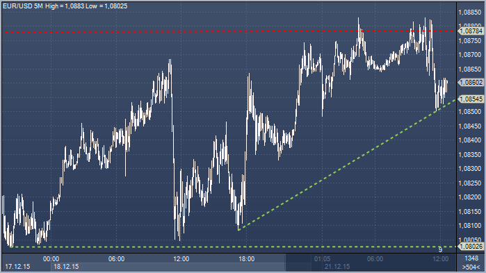 Доллар немного подрастает в ходе неактивных предпраздничных торгов в понедельник. Основным вопросом, который тревожит инвесторов, остается то, насколько и с какой скоростью Федрезерв США будет поднимать процентную ставку в следующем году. Американская валюта опустилась к иене до 121.46 иены, ещё дальше отступив от недолговременного максимума пятницы в 123.59. Евро опустился до $1.0856. Курс доллара к корзине основных валют незначительно растет на 0.07 % 98.77. Иена укрепилась в связи с пятничным решением Банка Японии скорректировать меры стимулирования денежно-кредитной политики вместо того, чтобы расширить программу выкупа активов. В результате, инвесторы стали урезать длинные долларовые позиции, что напоминало реакцию на принятые Европейским центральным банком ранее в этом месяце меры смягчения денежно-кредитной политики, которые также не оправдали больших надежд рынков.