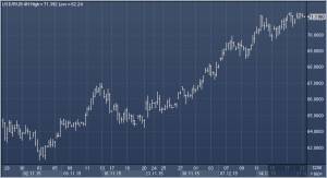 Во вторник к открытию торгов сложился умеренно позитивный внешний фон. Накануне индекс ММВБ зафиксировал снижение на 0,13% (1716,91), в то время как индекс РТС просел на 0,88%, до 758,97 Вчерашняя умеренно восходящая динамика на западных фондовых биржах остановила снижение индекса ММВБ возле отметки 1710 пунктов, хотя было бы логичным увидеть возврат к уровню 1700. Акции «Газпрома» вчера опустились к мощному диапазону поддержки на 130-131 руб. Отсюда можно ждать краткосрочного отскока наверх. Но если этот уровень все же будет пробит, стоит ждать усиления продаж и обвал котировок в район 125 руб. После бурной предыдущей недели эта началась довольно спокойно. Торговые обороты постепенно снижаются. Поскольку ценник на нефти перестал падать и даже пытается скорректироваться (Brent $36,5/барр.; +0,6%) стоит ждать сохранения стабильности по курсу рубля и даже его некоторого укрепления