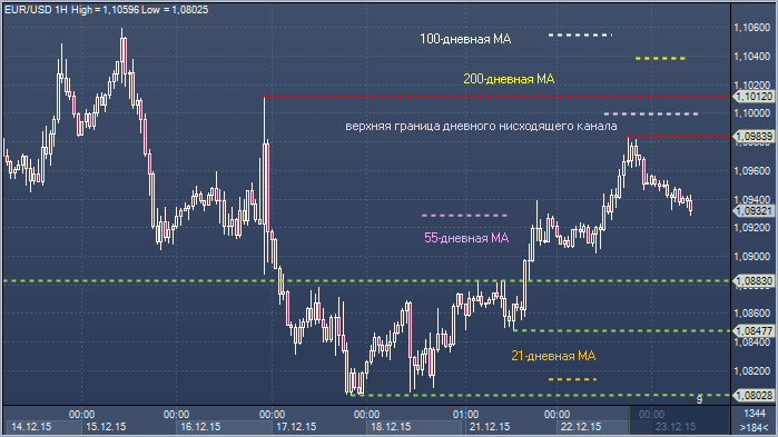 Евро/доллар. Технический взгляд Сопротивление 4: $1.1039 - 200-дневное скользящее среднее значение Сопротивление 3: $1.1010 - максимум 16 декабря Сопротивление 2: $1.1000 — верхняя граница падающего дневного канала Сопротивление 1: $1.0984 - максимум 22 декабря Цена: $1.0932 Поддержка 1: $1.0902 - минимум 22 декабря Поддержка 2: $1.0883 - переменная часовая поддержка / сопротивление Поддержка 3: $1.0845 - минимум 21 декабря Поддержка 4: $1.0829 - 21-дневное скользящее среднее значение