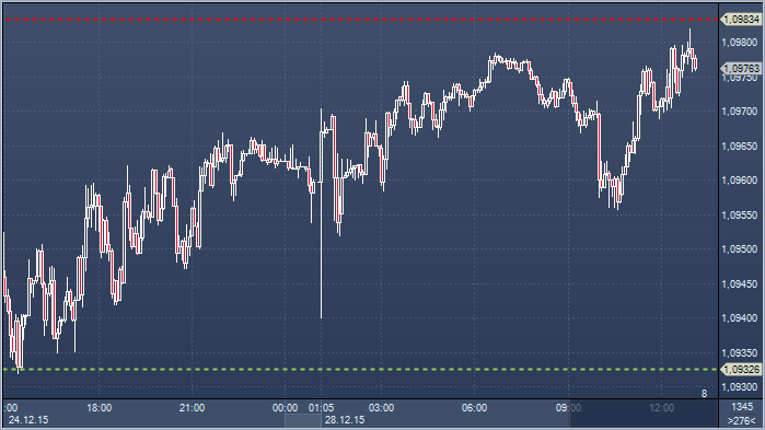 Как отмечают аналитики компании Verum Option, последние дни на рынке нельзя назвать насыщенными. В четверг были очень вялые движения, немного подросли евро и фунт. Однако никаких фундаментальных факторов роста для этих валют рынок не получал. Таким образом, в последние дни уходящего 2015 года трейдера настроены просто сократить количество открытых сделок к минимуму, оставив только долгосрочные, и максимально зафиксировать прибыль. Исходя из этого, открывать новые сделки в уходящем году уже нерационально. А если и делать это, то стоит торговать внутри дня.