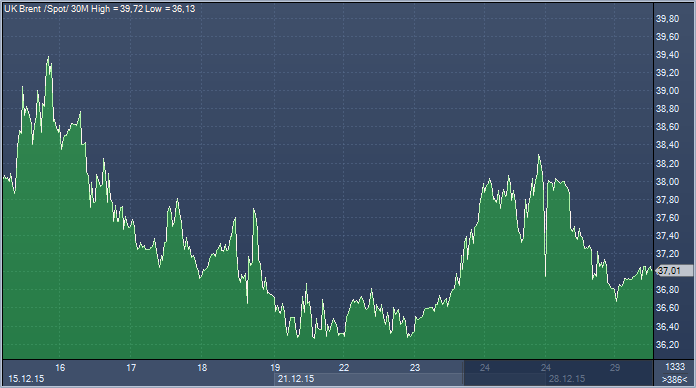 Нефтяной рынок малоактивен во вторник, не успев проснуться после праздников. Думается, открытие сессии в США должно внести свою лепту в увеличение оживленности торгов. К 14.13 мск фьючерсы на Brent подорожали на $0.16 до $36.75 за баррель, а фьючерсы на WTI - на $0.25 до $36.95. В последнее время американская нефть стала стоить дороже европейской за счет отмены запрета на экспорт нефти из США. В ходе торгов понедельника цены на нефть снижались более чем на 3% на фоне ожиданий "переизбытка" сырья. "Мы ожидаем, что разница в котировках достигнет $1. Такой она была до того как США увеличили добычу", - говорится в отчете Phillip Futures. По некоторым оценкам, в 2016 году производство нефти в США может снизиться на 500.000 баррелей в сутки, но большинство экспертов предсказывают, что предложение на мировом рынке все равно будет превышать спрос примерно на 2 миллиона баррелей в сутки или больше.