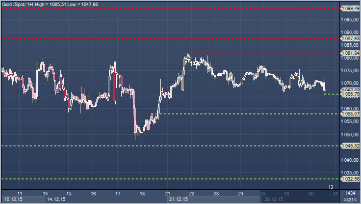 Золото. Технический взгляд Сопротивление 4: $1101.7 - 38,2% Фибоначчи от $1046.7-$1190.7 Сопротивление 3: $1099.4 — минимум 11 сентября, теперь сопротивление Сопротивление 2: $1087.6 — максимум 20 ноября Сопротивление 1: $1081.3 — максимум 21 декабря Цена: $1067.2 Поддержка 1: $1066.9 — минимум 28 декабря Поддержка 2: $1057.9 — максимум первоначального восстановления 18 декабря Поддержка 3: $1045.5 — минимум февраля 2010 Поддержка 4: $1032.5 — максимум марта 2008, теперь поддержка