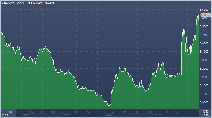 Курс юаня к доллару достиг сегодня минимальной отметки почти за пять лет. Дело в том, что инвесторы по-прежнему обеспокоены торможением китайской экономики и дальнейшим оттоком капитала. Юань, торги по которому проводятся за пределами материкового Китая (оффшорный) подешевел в Гонконге до самого низкого уровня с января 2011 года — 6.5970 юаня за $1 после того, как Народный банк Китая в среду зафиксировал курс на минимуме с мая 2011 года — 6.4895 юаня/$1. Спотовый курс юаня на торгах в Шанхае опустился менее чем на 0,1%, до 6.4903 юаня/$1, самого низкого уровня с мая 2011 года. С начала 2015 года курс юаня упал на 4,4% в Шанхае, что стало худшим результатом за более чем два десятилетия, и на 5,2% в Гонконге. Экономисты, опрошенные агентством Bloomberg, в среднем прогнозируют ослабление юаня еще на 3,1% в Шанхае в 2016 году.