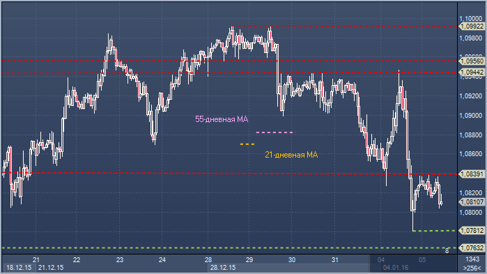 Евро/доллар. Технический взгляд Сопротивление 4: $1.0992 - максимум 28 и 29 декабря Сопротивление 3: $1.0956 - минимум 28 декабря, теперь сопротивление Сопротивление 2: $1.0944 - максимум 30 декабря Сопротивление 1: $1.0839 - часовое сопротивление 5 января Цена: $1.0810 Поддержка 1: $1.0781 - минимум 4 января Поддержка 2: $1.0763 - максимум 19 ноября, в настоящее время поддержка Поддержка 3: $1.0689 - максимум 25 ноября, в настоящее время поддержка Поддержка 4: $1.0638 - максимум 27 ноября, в настоящее время поддержка