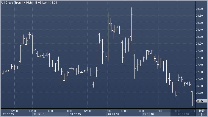 Нефть дешевеет третью сессию подряд (из трех в новом году) после ночной публикации данных по запасам от API и накануне публикации аналогичных цифр от DOE. По среднему прогнозу опрошенных Bloomberg экспертов, в последнюю неделю декабря запасы выросли на 500 000 баррелей, впрочем, такой же цифры ждали и от API, но сильно ошиблись. На рынке явно доминируют медвежьи настроения, и большинство экспертов крупнейших банков от Citigroup до UBS предрекает снижение черного золота в область $30 в ближайшие месяцы. Запасы в США остаются на 130 млн баррелей выше среднего 5-летнего значения для этого времени года. Отметим, что рост напряженности на Ближнем Востоке и в Северной Африке пока никак не помогает быкам по нефти, а вот снижение выручки нефтяных компаний из-за низких цен увеличивает для них стоимость заимствований. По данным Bloomberg, банки постепенно уменьшают кредитные линии проблемным компаниям, занятым добычей сланцевой нефти, количество которых при цене на черное золото в $35 постоянно растет. Таким образом, в ближайшей перспективе имеются все шансы увидеть каскад корпоративных дефолтов. Отражая эти опасения, вчера агентство S&P 500 понизило кредитный рейтинг Аляски с ААА до АА+ на фоне растущего дефицита бюджета штата.