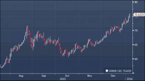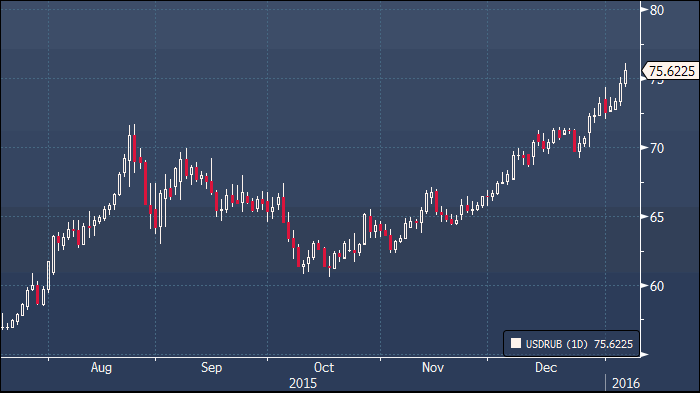 Выходной в России, вероятно, стал фактором, обусловившим резкость движения, однако и при нормальном уровне ликвидности от российской валюты можно было ожидать ощутимых потерь. Доллар/рубль прибавил 85 копеек и торгуется в районе 75.52, евро/рубль подорожал на 1.09 до 81.61, и подобные результаты не вызывают особого удивления, принимая во внимание падение цен на нефть (февральский фьючерс брент торгуется ниже $33 за баррель), а также общий всплеск пессимизма на фоне развития событий на фондовых площадках Китая. Вмешательство регулятора здесь выглядит вероятным и может несколько сгладить неприятное впечатление, однако эффект предшествовавших мер оказался непродолжительным, и доверие и уверенность инвесторов поколеблены. Между тем, на рынке нефти все без изменений — ситуация остается стабильно негативной, и дальнейшее падение выглядит весьма вероятным, поскольку участники рынка пока не видят, чтобы падение цен сказалось на уровне добычи ключевых игроков. В условиях, когда сырьевые активы остаются под давлением, а инвесторы с опаской относятся к развивающимся рынкам от рубля сложно ожидать улучшения динамики, напротив — цели в районе 80 рублей за доллар могут быть достигнуты уже в ближайшей перспективе.